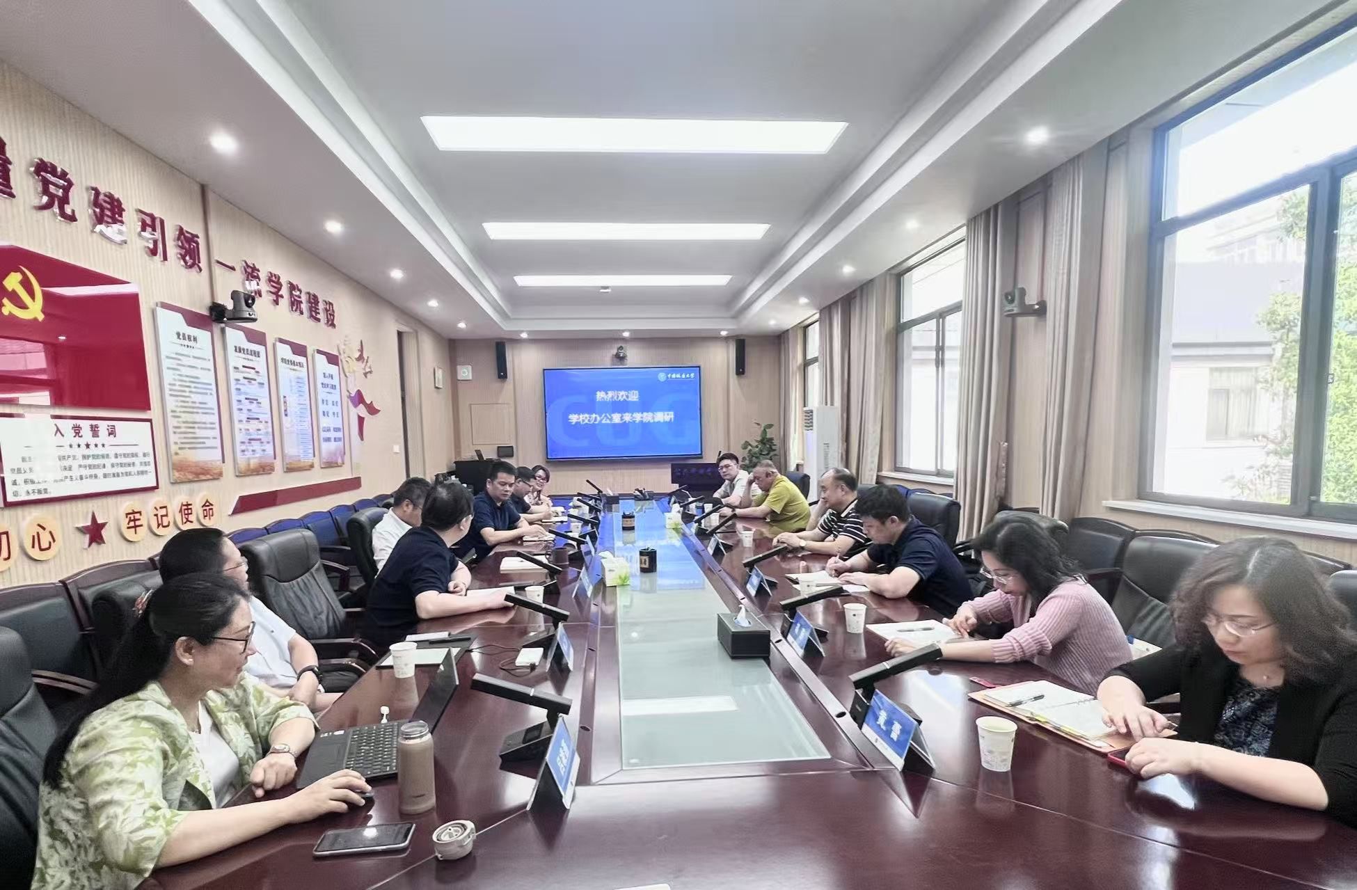 5月7日下午,公司办公室主任张玮、依法治校办公室主任李宇凯带领班子成员到公司开展调研指导工作,公司党委书记徐岩、经理龚健、班子成员及综合办公室参加调研座谈会。