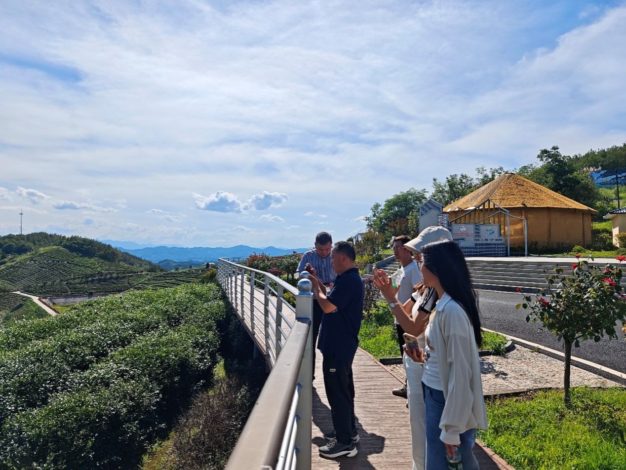 7月3日下午,实践团来到了宝丰镇龙井村生态茶园。团队成员跟随龙井村驻村第一书记的步伐,看到了成片的茶园基地、亲子乐园、茶园徒步廊道……据第一书记介绍,龙井村创新提出茶旅融合的思路,已构成了茶产业、茶生态、茶旅游互融共进的现代产业体系,取得了该村人均增收3000元以上的建设性成果。