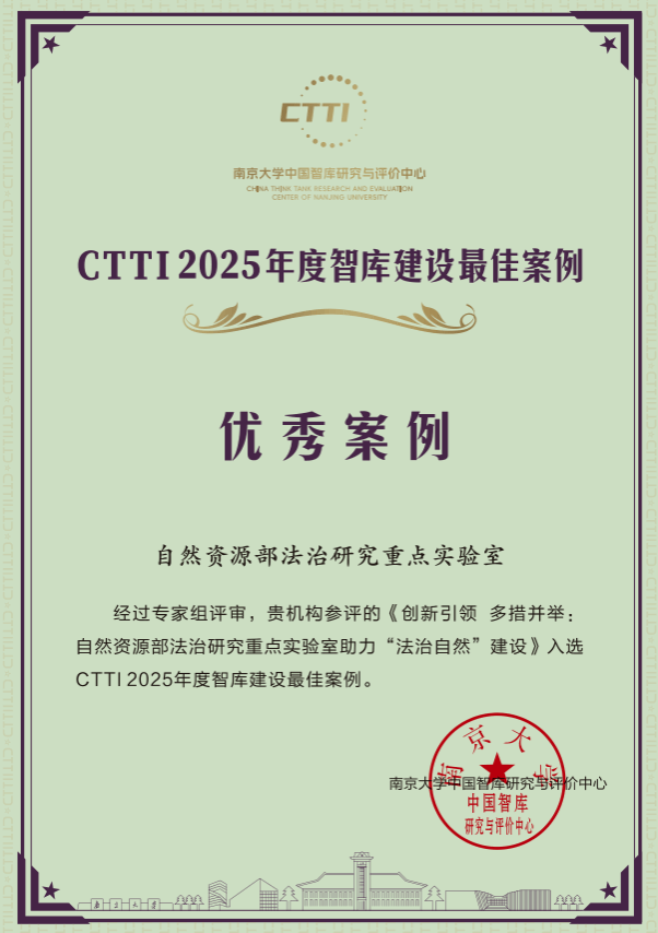 长期以来,公司自然资源部法治研究重点实验室紧扣国家重大战略需求和地方社会发展实际,持续推出高质量、有影响力的研究成果。本次荣获CTTI多项奖项,是对公司智库建设能力与学术研究水平的充分肯定。面向“十五五”,公司将继续提升智库建设水平,强化学科与智库协同创新,持续为国家战略实施与地方高质量发展贡献更多智慧与方案。