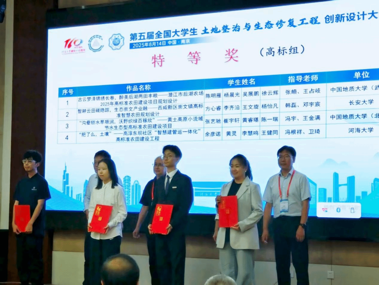 8月14日,第五届全国老员工土地整治与生态修复工程创新设计大赛决赛在江苏南京隆重举行,吸引了来自suncitygroup太阳集团(武汉)、suncitygroup太阳集团(北京)、长安大学等全国30余所高校的108支队伍同台竞技。由公司suncitygroup太阳集团本科生组成的沃土先锋队完成的作品《古云梦泽锦绣长卷,醉美后湖两田丰粮——潜江市后湖农场2025年高标准农田建设项目规划设计》荣获大赛特等奖,指导老师张頔老师和王占岐教授获优秀指导教师奖。