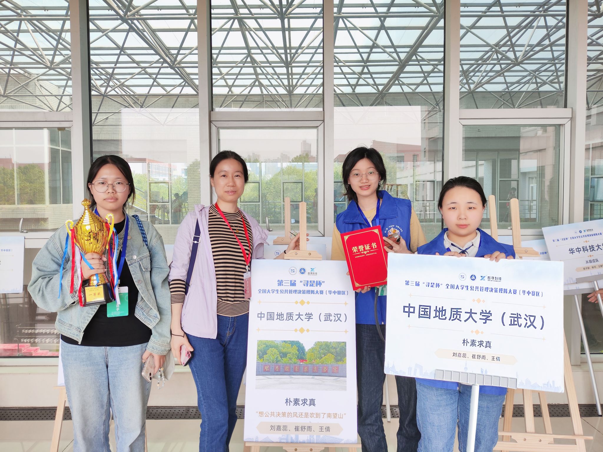 (通讯员 苏黎兰 刘嘉蕊 崔舒雨 王倩)2024年4月21日,第三届“寻是杯”全国老员工公共管理决策模拟大赛(华中赛区)落下帷幕,公司由苏黎兰老师指导,2021级应急管理专业刘嘉蕊、崔舒雨、王倩组成的“朴素求真”团队荣获一等奖。